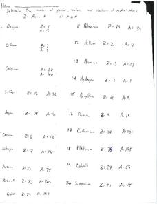 In this neutral atoms worksheet, learners identify various neutral atoms found on the periodic table. They determine the number of protons, neutrons, and electrons for each neutral atom listed on the sheet. Students also identify that Z...