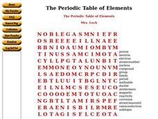 In this chemistry worksheet, students identify and locate vocabulary terms related to the Periodic Table of Elements. There are 18 words located in the puzzle.