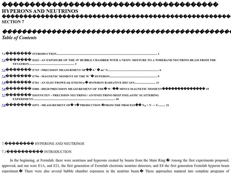 The third paragraph pinpoints the importance of hyperons in particle research. Hyperons and neutrinos share characteristics of the weak force. Complex stuff, but the real deal. Parts of this report may be very useful. Many photos, slow...