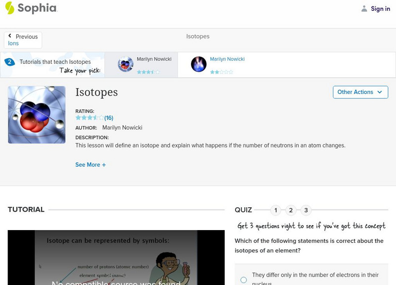 This lesson will define an isotope and explain what happens if the number of neutrons in an atom changes. It is 1 of 9 in the series titled "Isotopes."