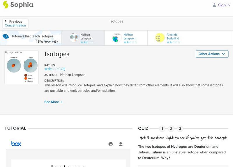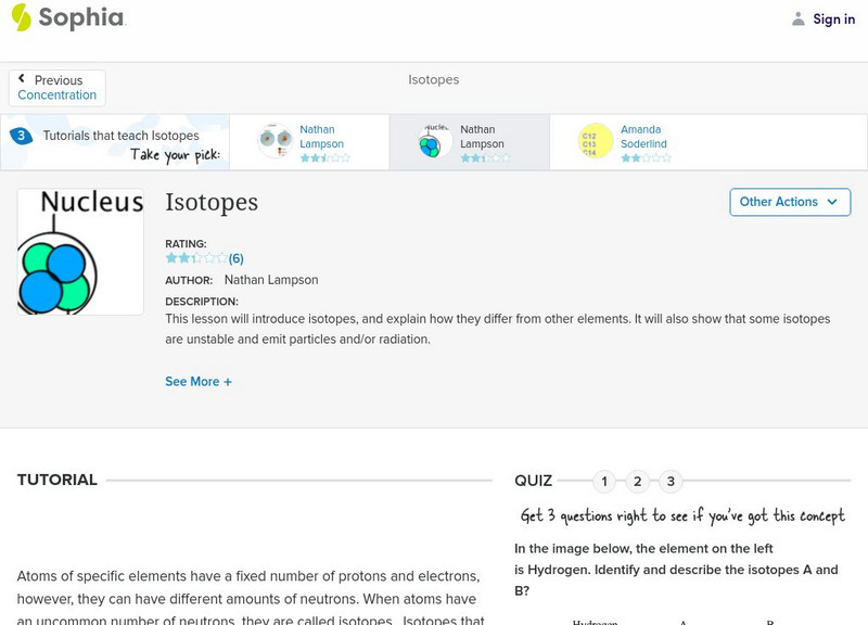 This lesson will introduce isotopes, and explain how they differ from other elements. It will also show that some isotopes are unstable and emit particles and/or radiation. It is 7 of 9 in the series titled "Isotopes."