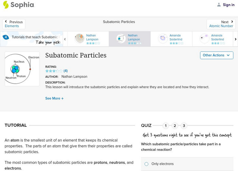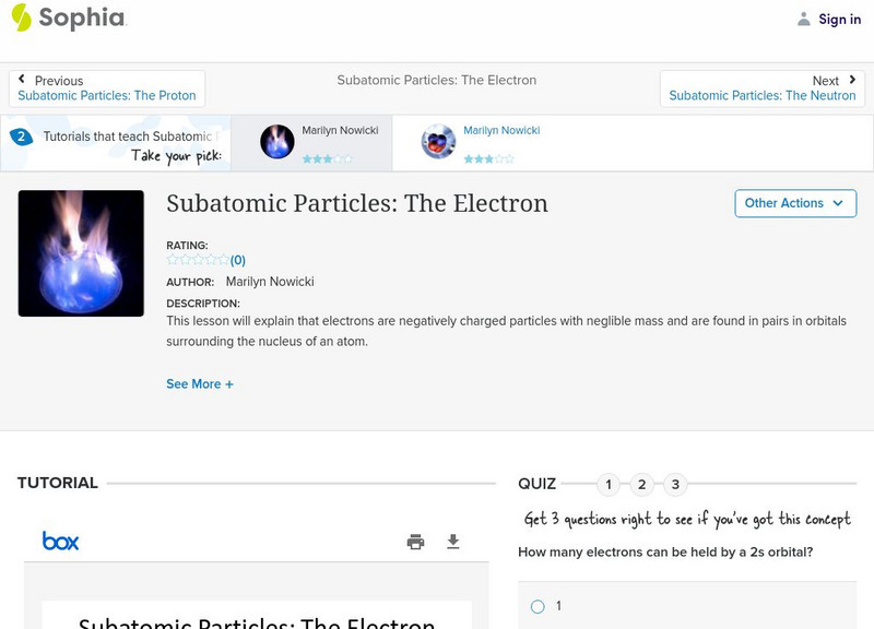 Sophia: Subatomic Particles: The Electron: Lesson 3