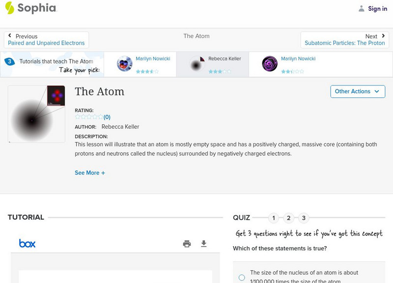 Sophia: Subatomic Particles: The Proton: Lesson 2
