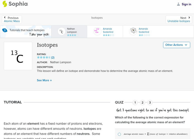 This lesson will define an isotope and demonstrate how to determine the average atomic mass of an element. It is 2 of 9 in the series titled "Isotopes."