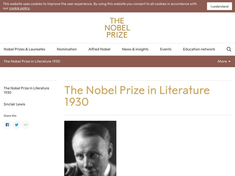 At this site from The Nobel Foundation you can read about the 1930 recipient of the Nobel Prize in Literature, Sinclair Lewis, who was honored "for his vigorous and graphic art of description and his ability to create, with wit and...