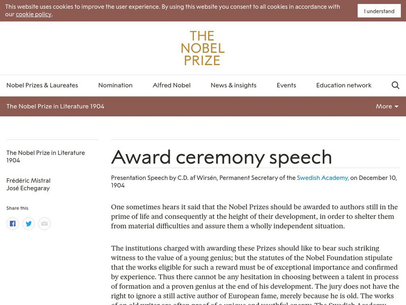 The Nobel Prize: Jose Echegaray Award Ceremony Speech