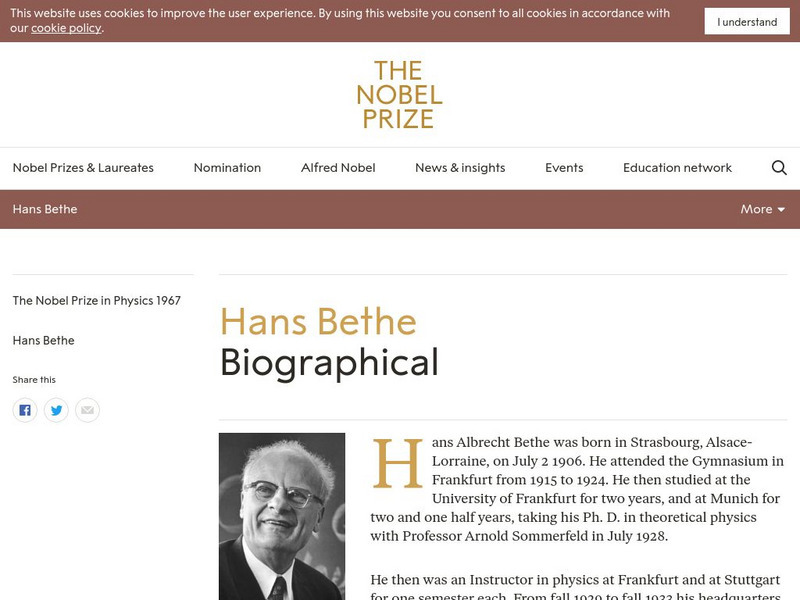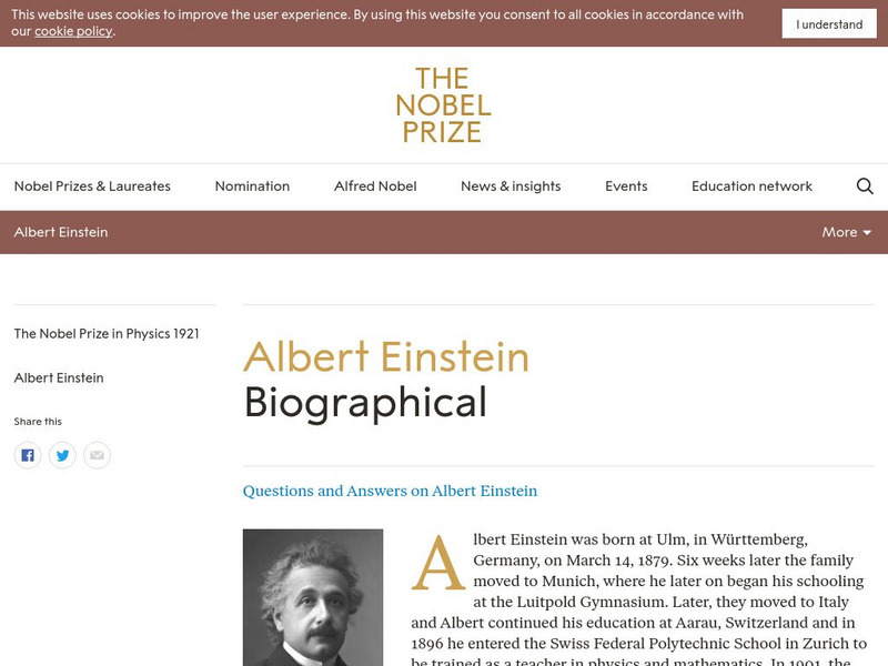 The Nobel Foundation provides this site of Albert Einstein. Includes biographical information about the scientist and other interesting sidebars, such as a video of George Bernard Shaw paying tribute to Einstein.