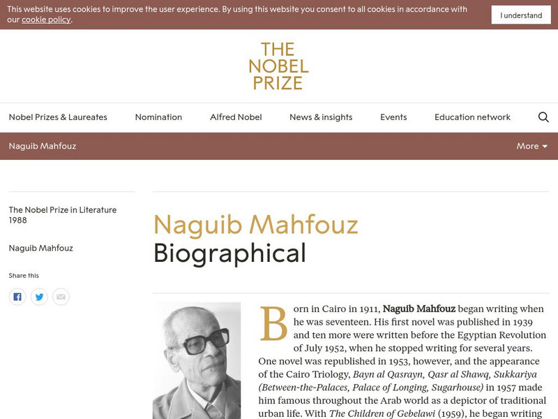 The Nobel E-Museum offers a biography of Naguib Mahfouz, renowned Egyptian novelist and winner of the Nobel Prize in Literature, 1988.