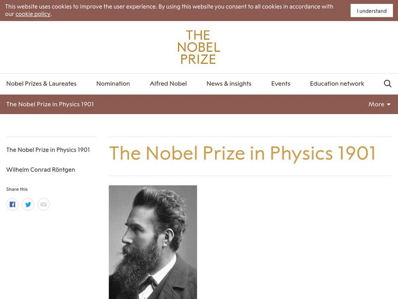In 1901, Wilhelm Conrad Rontgen won the Nobel Prize for Physics because of his work with the x-ray. The site includes a picture of Rontgen along with biographical information, his Nobel lecture, and other resources, such as illustrated...