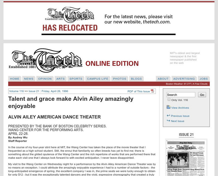 Mit: The Tech: Talent and Grace Make Alvin Ailey Amazingly Enjoyable