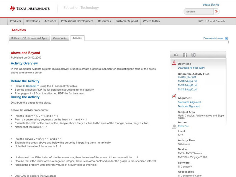 In this Computer Algebra System (CAS) activity, students create a general solution for calculating the ratio of the areas above and below a curve.