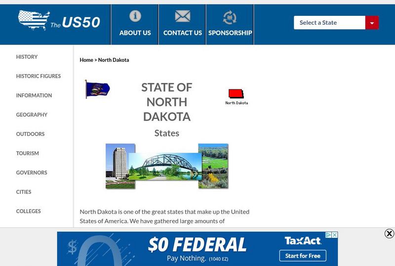 Provides complete information regarding North Dakota history, famous people, cities, geography, state parks, tourism, and historic sites. A fact sheet of information and a quiz are also available.