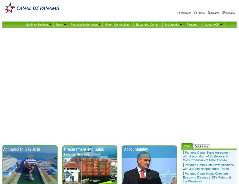 This is the index page of the Panama Canal Authority Web site. The page contains numerous links to learn all pertinent information about the canal. Links include: general information, history, transition of control (from the U.S. to...