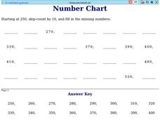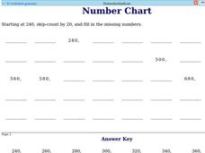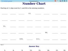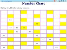 In this number chart activity, learners fill in the blank for the missing numbers 0 through 99. Students have to fill in 47 missing numbers.