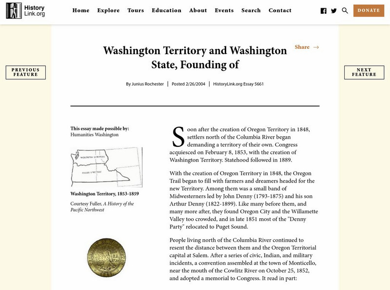 History Link provides a short history on the beginning of Washington state.