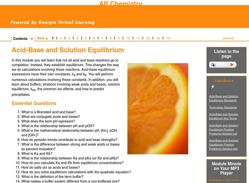 Ga Virtual Learning: Ap Chemistry: Acid Base and Solution Equilibrium