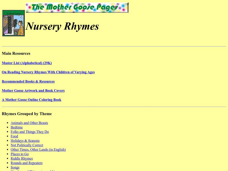 An outstanding resource to get all your favorite Mother Goose nursery rhymes. Activities included are suggestions on reading and teaching nursery rhymes to children at varying ages. Has a list of recommended resources that go along with...