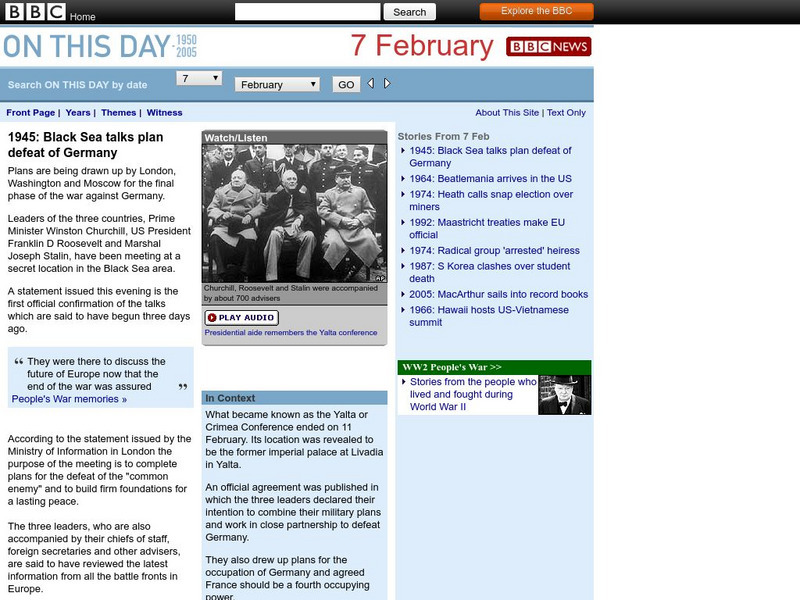 Bbc News: On This Day: 7 February 1945: Black Sea Talks Plan Defeat of Germany
