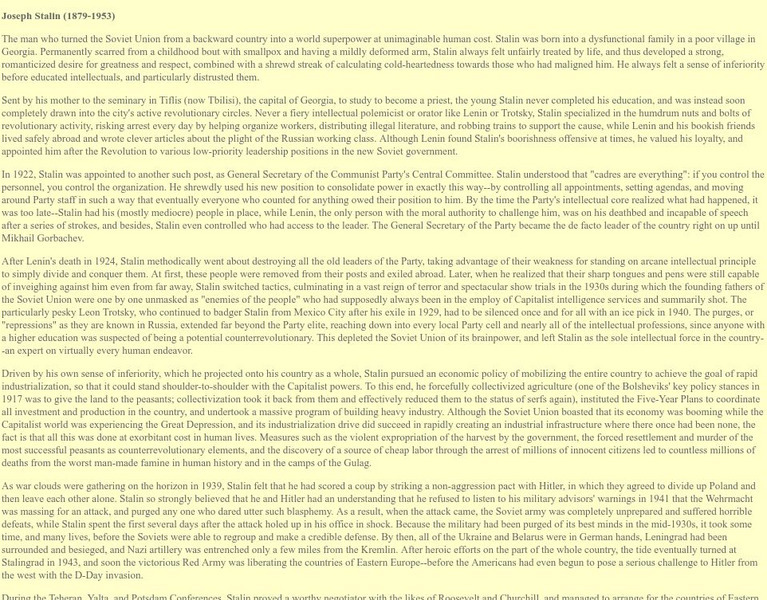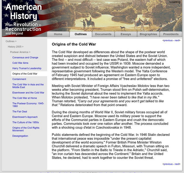 A lengthy lecture-format page with key points of the development and emergence of the Cold War. Includes many useful links within the content.