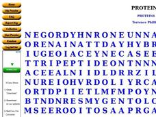 In this biology worksheet, students identify and locate various vocabulary terms pertaining to types of proteins. There are 22 biology terms located in the word search.