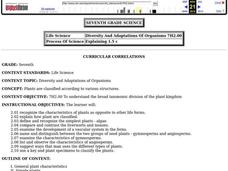 Seventh graders examine different categories of plant life and their roles as producers of food and oxygen for other organisms. They study the evolution of plants from simple organisms to very complex ones. They look at the different...