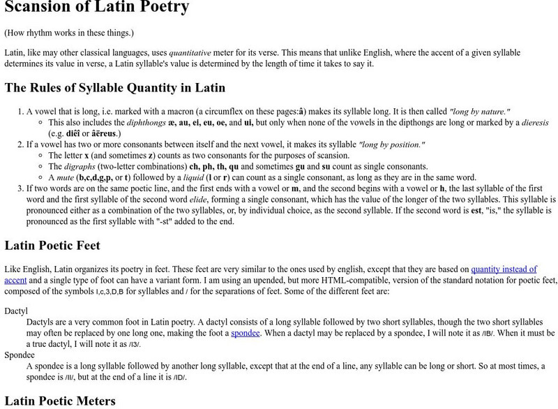 This comprehensive teacher-created resource provides many resources for teaching the "Aeneid." Lots of help on vocabulary, scansion tests, and figures of speech. Activities for every book.