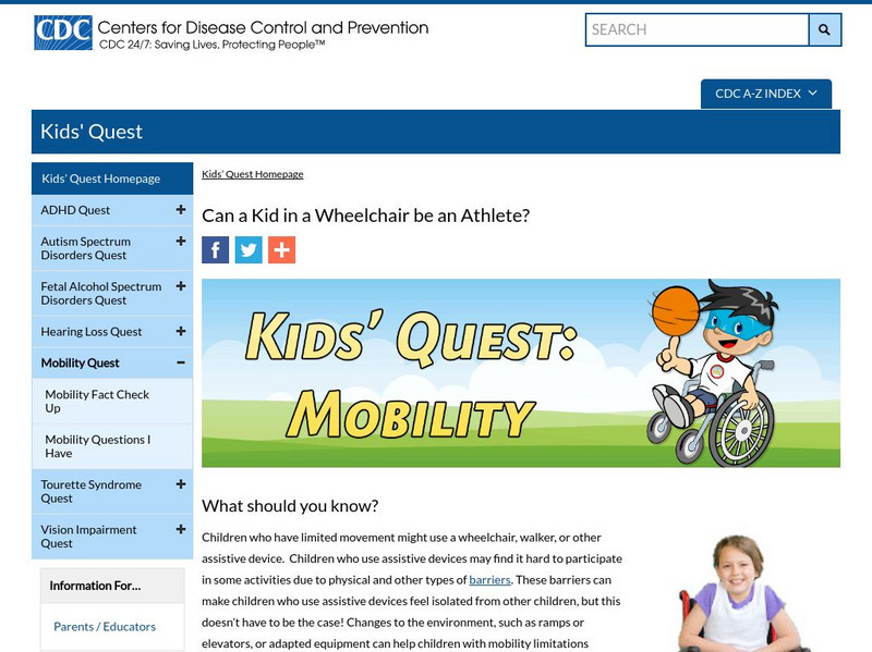 Centers for Disease Control: Kids' Quest: Mobility: Wheelchair Athletes?