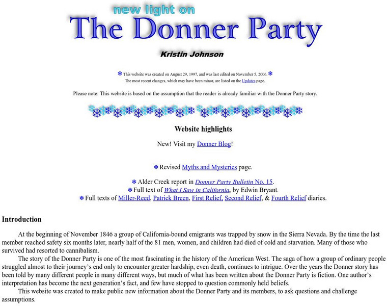 The youngest daughter of George Donner tells the harrowing tale of her family's ill-fated journey at this site from the Library of Congress. This is primary source material.