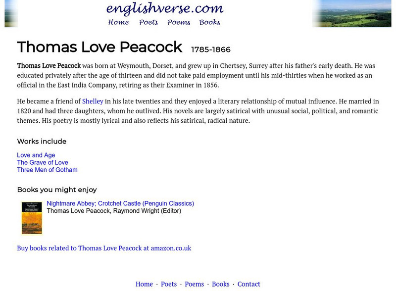 Thomas Love Peacock's life is briefly sketched here, and the site includes the full text of three poems.