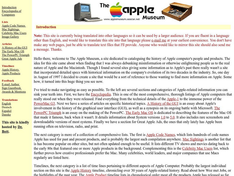 The Apple Museum provides in depth information on the history of the Apple company and its products. Contributing to this information are articles written in reference to the company and/or its products. Code names, video clips, specs...