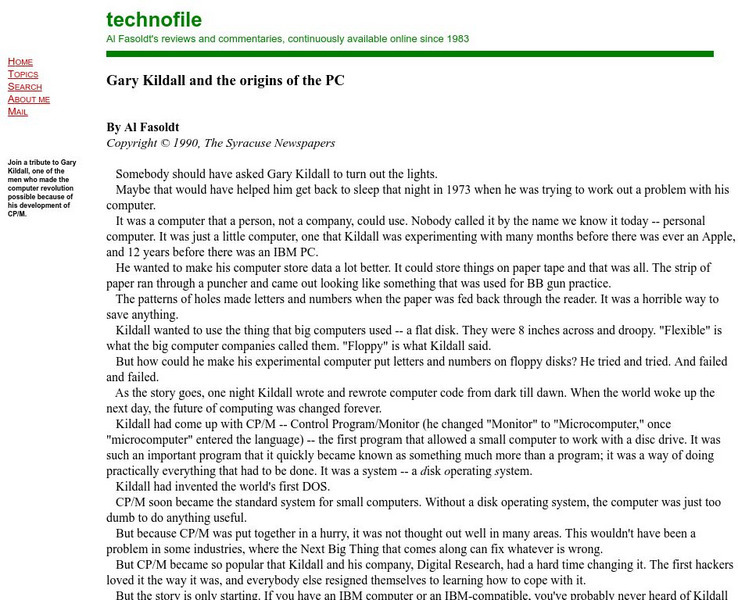 Technofile: Gary Kildall and the Origins of the Pc