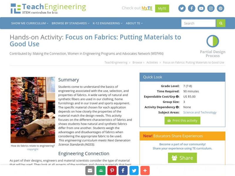 Teach Engineering: Focus on Fabrics: Putting Materials to Good Use