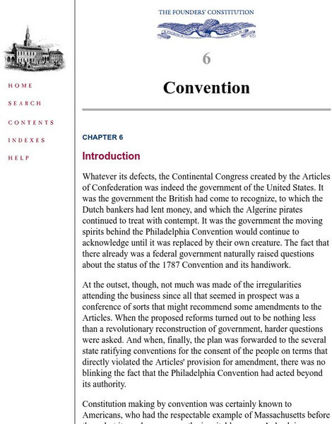 A lengthy and detailed article on the issues and events of the Constitutional Conventions in their attempt to amend and then replace the Articles of Confederation.