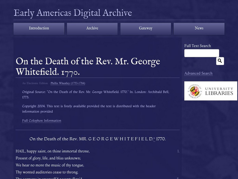 Early Americas Digital Archive: On the Death of the Rev. Mr. George Whitefield