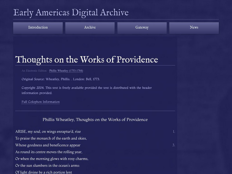 Early Americas Digital Archive: Thoughts on the Works of Providence
