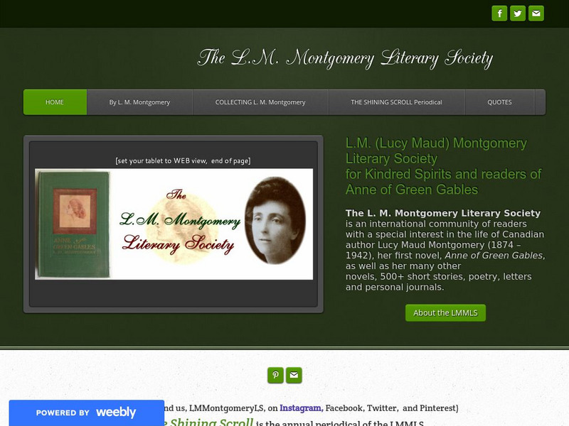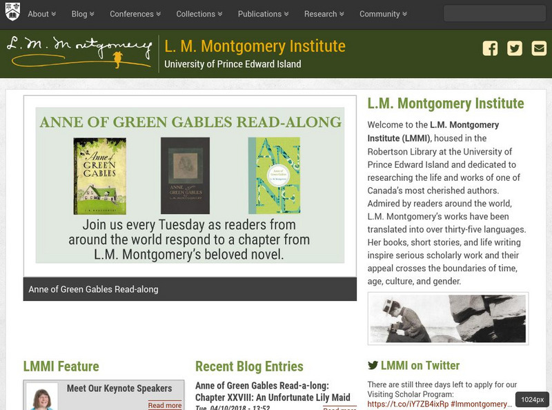 This educational institute is devoted to the study of Lucy Maud Montgomery and her writings. In addition to biographical information and book lists, there are excellent links and some good teaching ideas. A virtual exhibit on the site...