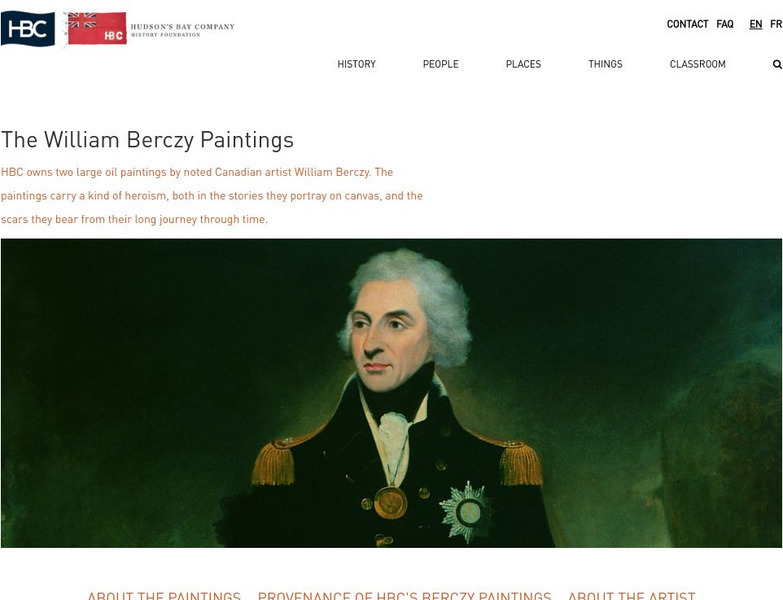 An interesting history of two paintings by William Berczy. The site pays particular attention the paintings' connection to the Hudson Bay Company. Also includes a brief biography of William Berczy.