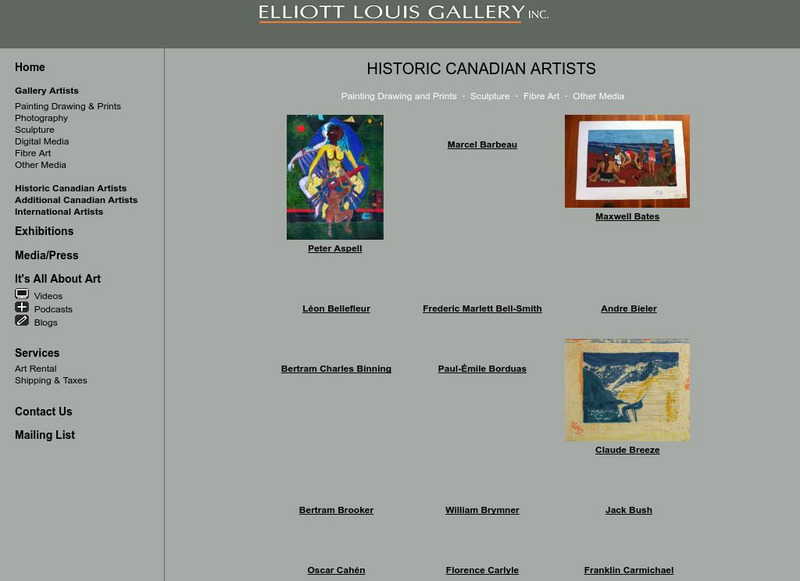 Lists historic Canadian artists of importance with images of some of their works. Click on an artist's name for some brief biographical information.