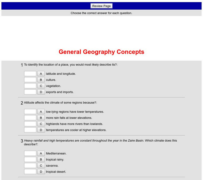 Historyteacher.net: Global Studies: General Geography Concepts Quiz