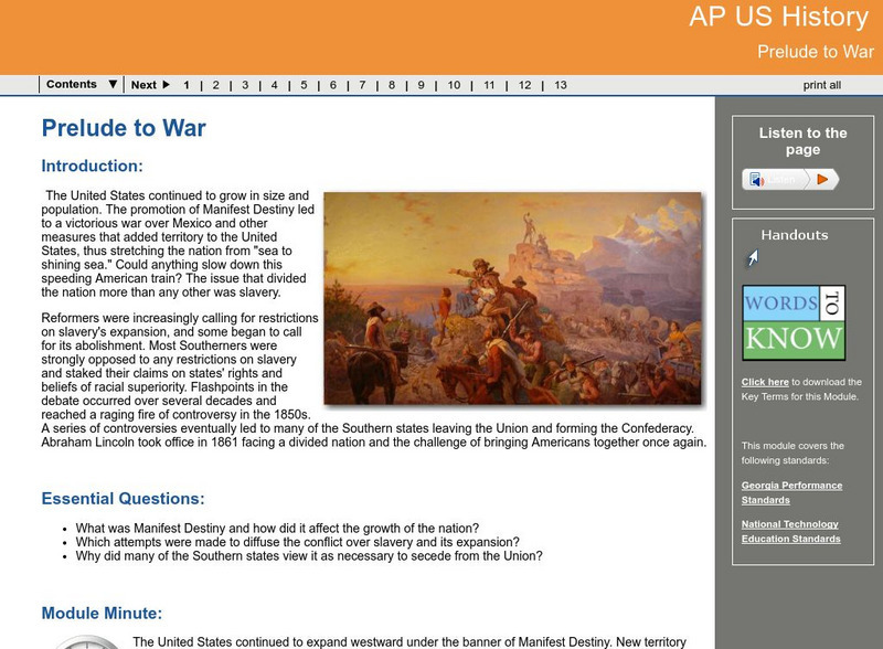 Ga Virtual Learning: Ap Us History: Prelude to War