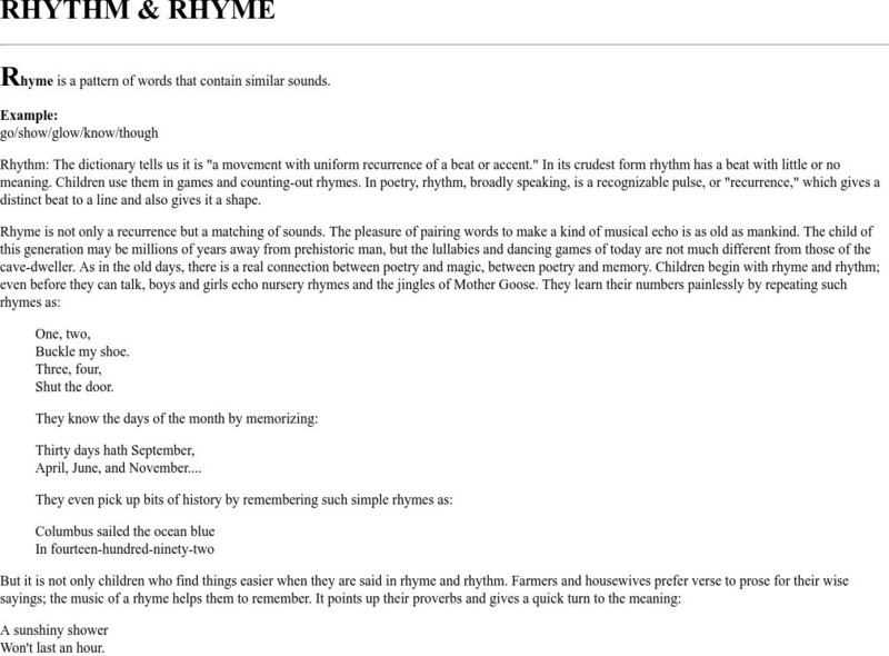 Cyber English (By Ted Nellen): Rhythm and Rhyme