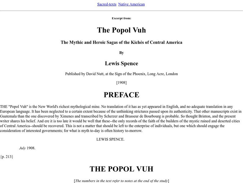 This is an extract from an English translation of the Popol Vuh, the mythic and heroic sagas of the Kiches of Central America.