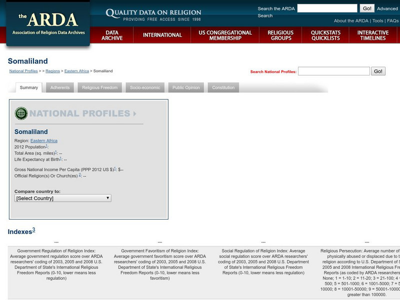 Learn about religion in the Somaliland region of Somalia, in this Association of Religion Data Archives country profile; includes general facts, history, and religious data.