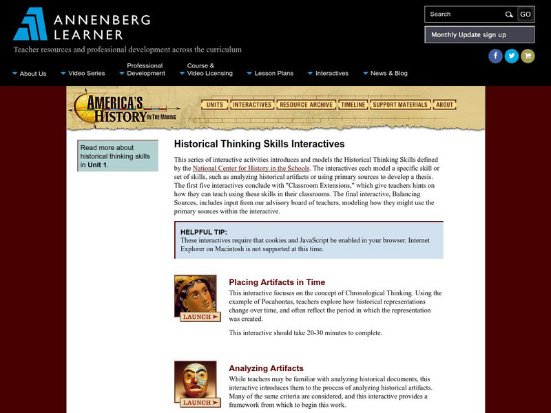 Annenberg Learner: America's History in the Making: Historical Thinking Interactives