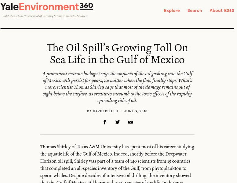 Yale Environment 360: The Oil Spill's Growing Toll on the Sea Life of the Gulf