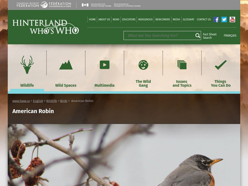 Explore the world of the American Robin through this clear and concise resource. Students will learn more about information on the characteristics, reproduction, habitat, food, song, and more through this site.
