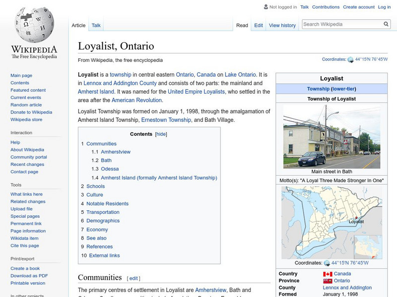 Wikipedia: Loyalist, Ontario