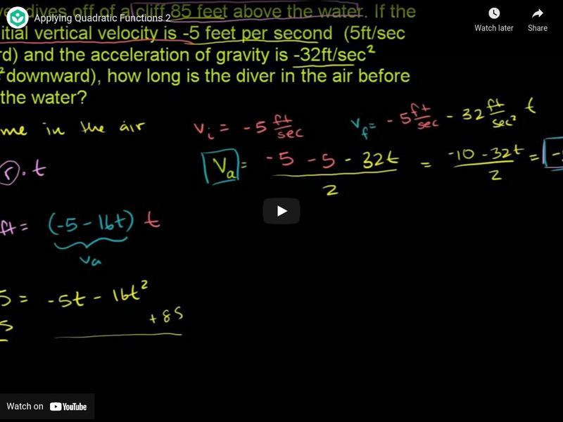 Khan Academy: Algebra: Applying Quadratic Functions 2