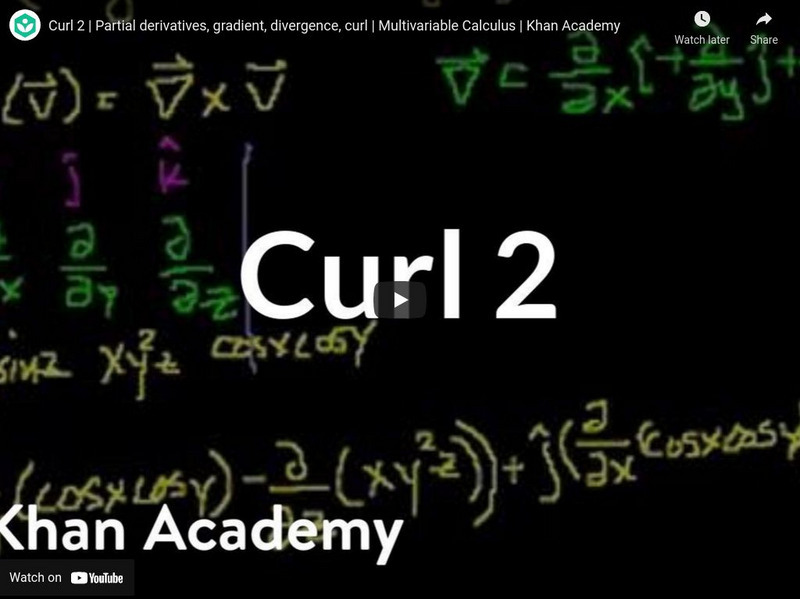 Video demonstrating how to calculate curl for a specific three-dimensional vector field. [10:17]