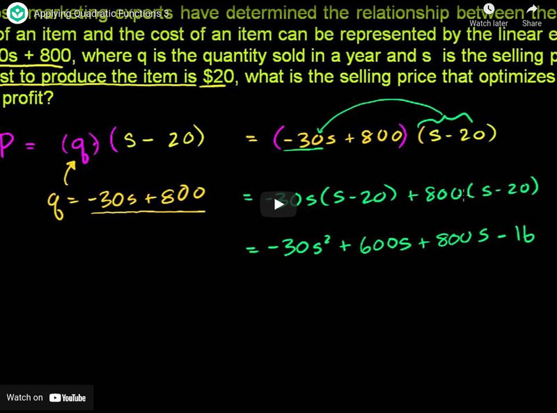 Khan Academy: Algebra: Applying Quadratic Functions 3